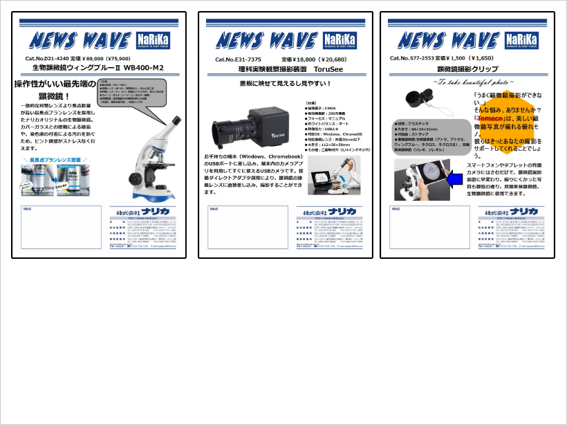 企画課体験では、翌日の営業体験で使用する製品チラシ「NEWSWAVE」を作成しました。