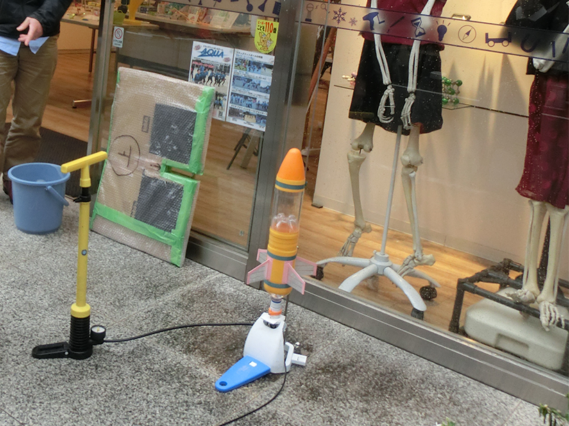 発表会では、3日間の体験をまとめて、社員の前で発表を行いました。その後ペットボトルロケットの打ち上げを体験しました。