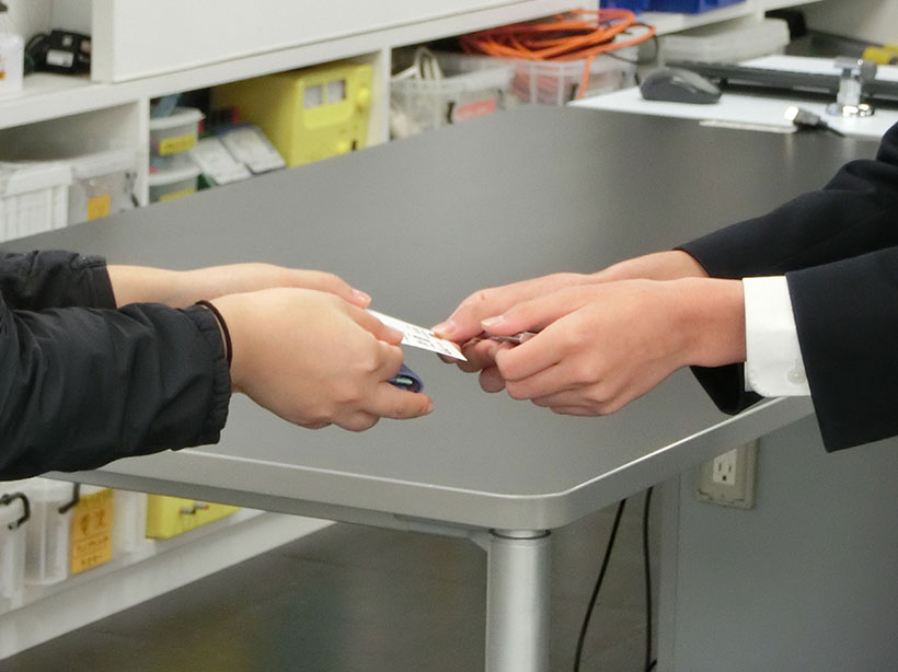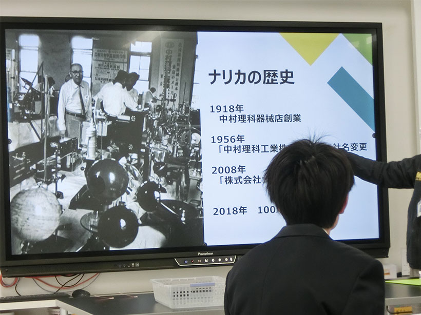 ナリカ本社にある各部署を回りながら業務を体験し、製品がどのようにできて学校まで届くかという流れを理解していただきました。