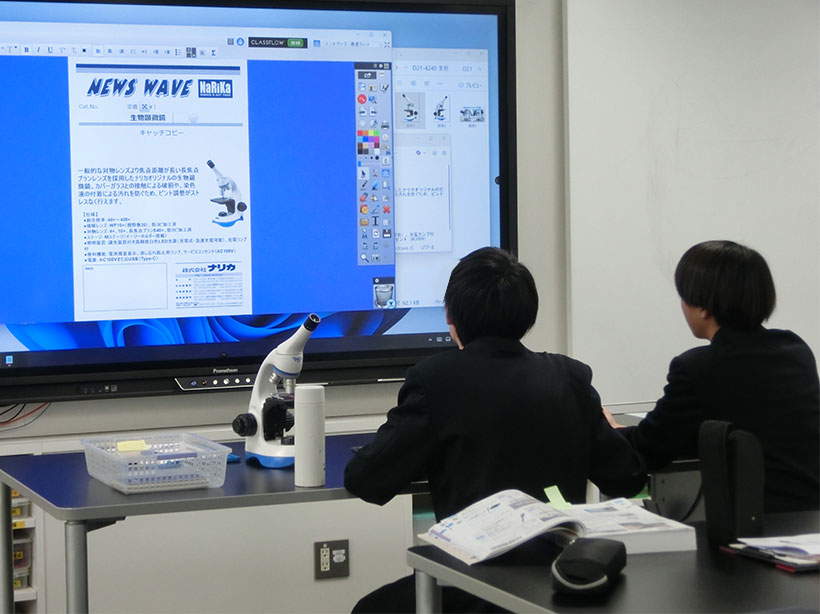 企画課体験では、翌日の営業体験で使用する製品チラシ「NEWSWAVE」を作成しました。