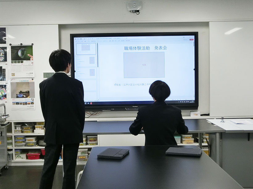 江戸川区立小松川第二中学校2年の生徒さん2名が、1月13日~1月16日に職場体験活動でナリカに来てくださいました。